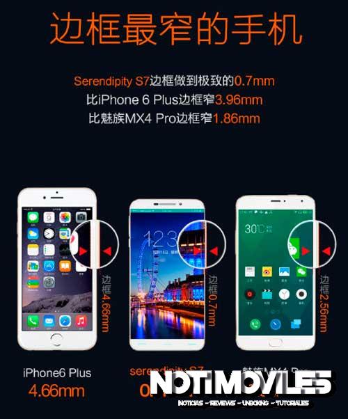 Serendipity S7. En el mes de diciembre, unas noticias hacían referencia a un smartphone que tenia unos biseles muy delgados. Hace unas horas nuevas noticias apunta que Serendipity estaba desarrollando un smartphone llamado como el S7 que viene con casi biseles ultra finos y un perfil delgado.