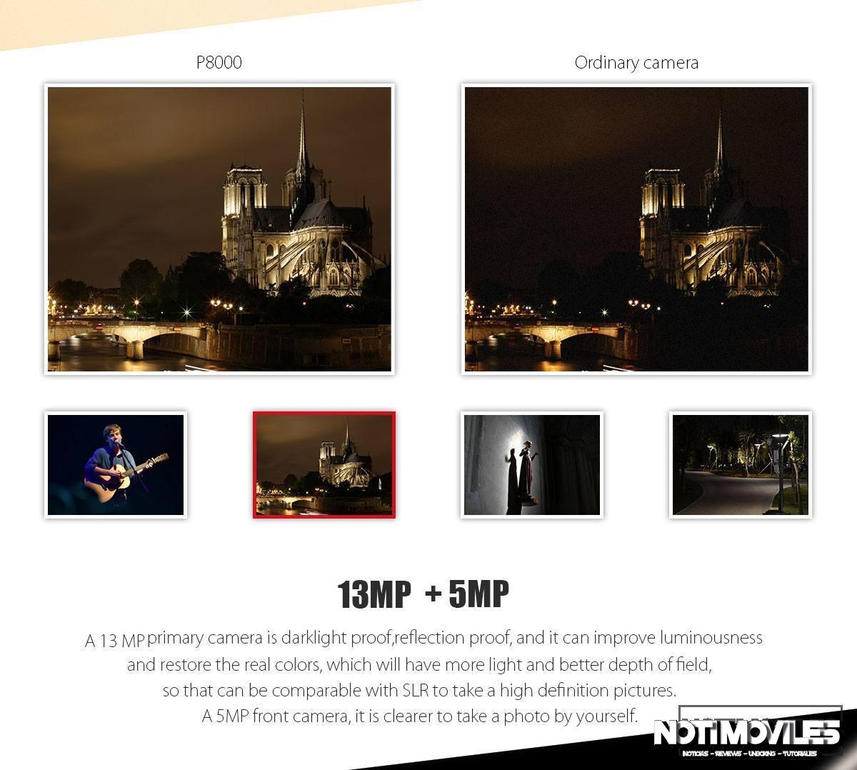 Podemos ver que el P8000 es un smartphone que alcanza las 5,5 pulgadas, por lo que lo debemos clasificar dentro del segmento de los phablets. Así, es un terminal grande, que se puede decir tiene cierto parecido al Elephone P7000.