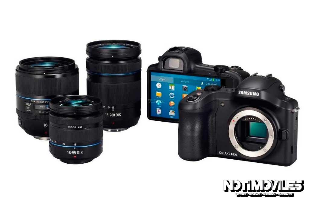 Galaxy NX. La fascinación de Samsung con cámaras de apareamiento con Android tomó de los dispositivos que son «más cámara, menos Android» (Galaxy cámara, NX-2000), a «más Android, menos la cámara» (Galaxy S 4 Zoom), y ahora, finalmente, la gran -liga para las réflex digitales, con el Galaxy NX.
