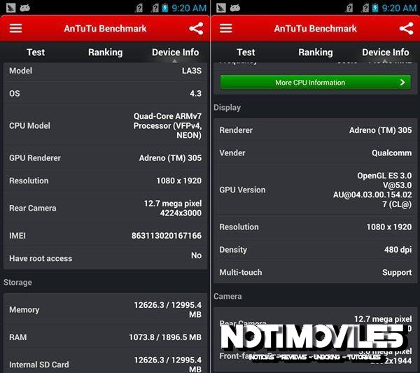 Hot Pepper LA3S. Con Snapdragon 400 funciona de manera similar al MT6582 Quad Core de mediatek, que es el rey de los procesadores en relación calidad-precio. Hot Pepper LA3S es una Ofertas de gama media escala de rendimiento entre 16000 a 17000 puntos más en Antutu Benchmark y también es capaz de ejecutar la mayoría de aplicaciones y juegos en 3D con su procesador de gráficos Adreno 305. Además, el dispositivo también está equipado con 2 GB de memoria RAM interna y 16 GB ROM para almacenamiento, que es ampliable hasta 32 GB mediante tarjeta MicroSD.
