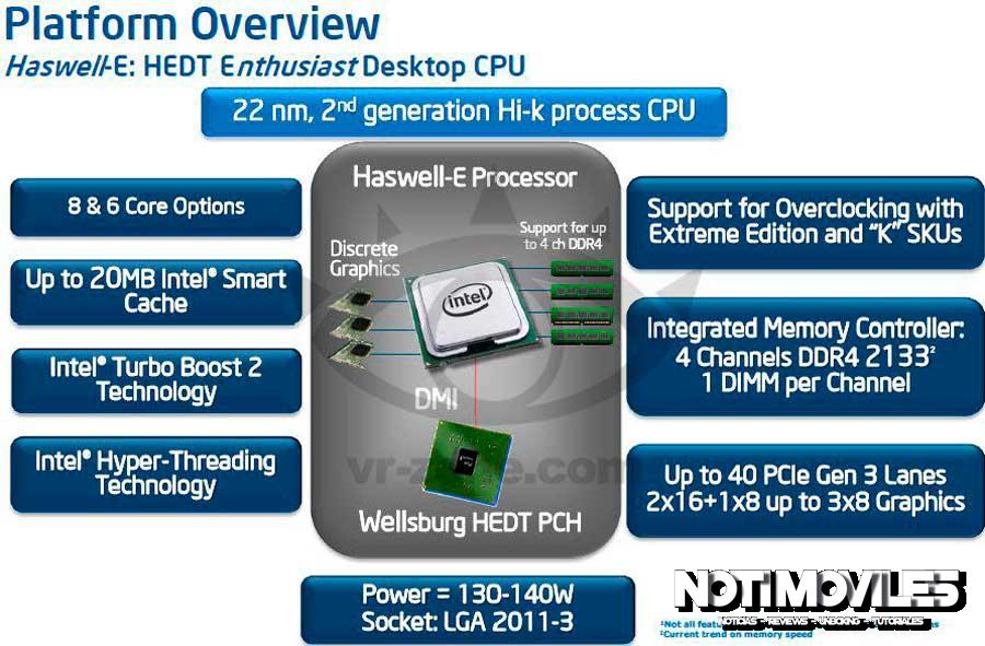 Intel Haswell 2014-E. Otro día, otra fuga de Intel y algunas sorpresas también. Durante los últimos días hemos cubierto hoja de ruta de escritorio de Intel para los próximos doce meses, con lo que las noticias y puntos de vista sobre los planes de Intel para el intervalo de tiempo antes mencionado. Hoy os traemos noticias sobre lo que está por seguir en el segundo semestre de 2014, en concreto, sobre los planes de escritorio premium de Intel para el intervalo, es decir Haswell-E, DDR4 y X99 PCH.