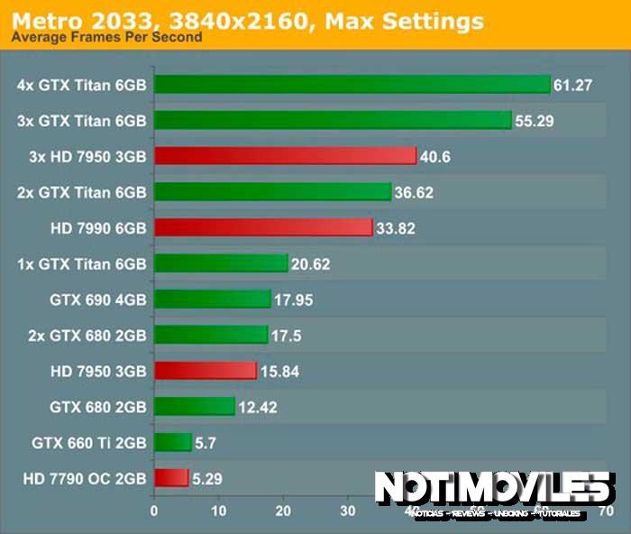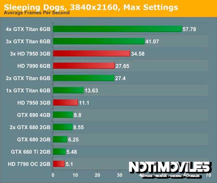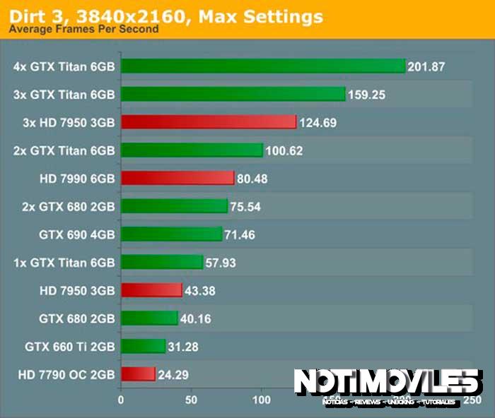 Según la última prueba realizada por Anandtech parece que no es, al menos no en todas las ocasiones. El personal en el hecho de observar el comportamiento de algunas de las tarjetas gráficas más populares de hoy en día luchan con la instalación de juegos de video en 3840 x 2160, incluyendo Metro 2033, Dirt 3 y Sleeping Dogs.