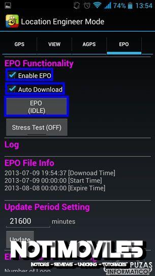 Tengo un móvil con mtk6592 y al intentar seguir el tutoriales no encuentro las opciones enable epo ni autodownload. Al entrar en lo catión bases service/ epo solo aparece época download (que no se activa) y stress test off.