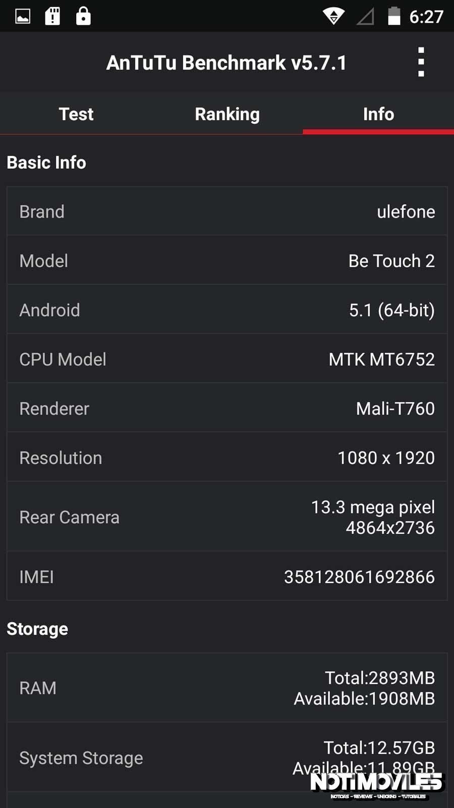 Ulefone Be Touch 2 Antutu Benchmark